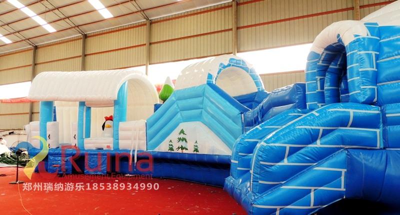 1、氣密性好 冰雪世界充氣城堡用先進的滾輪熱熔機,配合熱合工藝進行產(chǎn)品縫合,代替了傳統(tǒng)的縫紉工藝,大大增強了水上產(chǎn)品的氣密性,減少漏氣,延長使用事件。