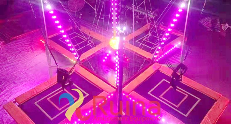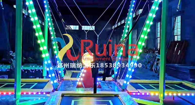 常規(guī)四人蹦極他沒有裝飾也沒有燈光的,就是四個面小孩在上面玩耍的,但是四人發(fā)光蹦極就不是這種的了,他這邊除了有豪華轉(zhuǎn)馬裝飾外,這邊還有燈光的,并且燈光的效果是出乎意料的,如果晚上經(jīng)營的話,這是一個不錯的選擇。