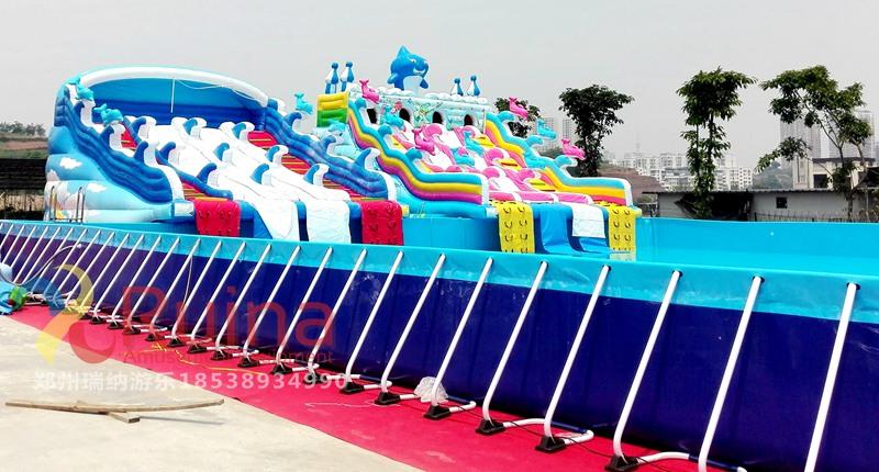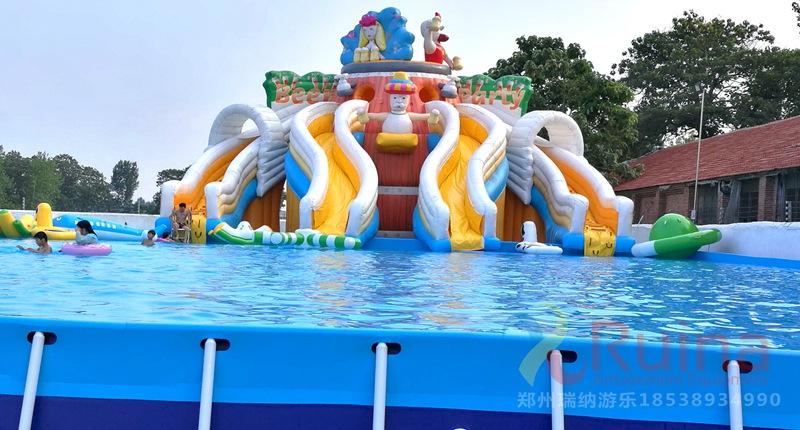 3、支架游泳池的游玩方式多樣,支架水池即可以和一些動(dòng)物卡通人物造型的水上滑梯組合使用,還可以將不同規(guī)格的支架泳池通過各種充氣模型玩具組合,組成一個(gè)集娛樂性、競(jìng)賽性的水上沖關(guān)闖關(guān)設(shè)備,可以調(diào)整支架游泳池位置來改變水上沖關(guān)關(guān)卡設(shè)置,豐富水上沖關(guān)的趣味性和耐玩性。